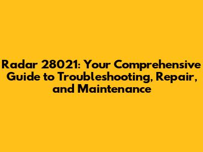 Radar 28021: Troubleshooting, Repair, And Maintenance Guide