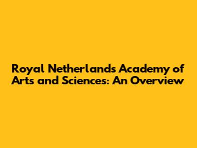 Royal Netherlands Academy Of Arts And Sciences: An Overview