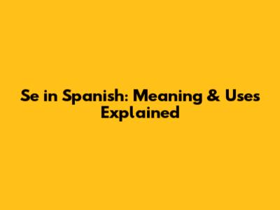 Se In Spanish: Meaning & Uses Explained