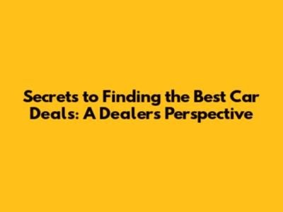 Secrets To Finding The Best Car Deals: A Dealer's Perspective
