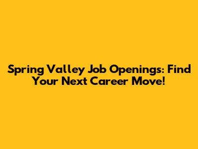 Spring Valley Jobs: Find Open Positions Now!