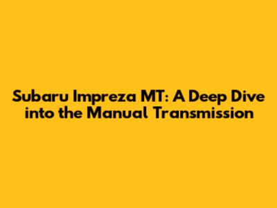Subaru Impreza MT: A Deep Dive Into The Manual Transmission