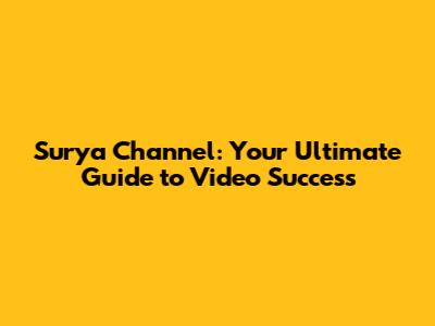 Surya Channel: Your Ultimate Guide To Video Success