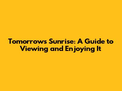 Tomorrow's Sunrise: A Guide To Viewing And Enjoying It