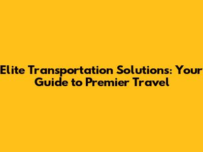 Hey guys! Are you looking for elite transportation solutions that can really elevate your travel game? You've come to the right place. Whether you're a business executive needing seamless corporate travel, a family planning a special vacation, or someone who simply appreciates the finer things in life, understanding the world of elite transportation solutions is key.