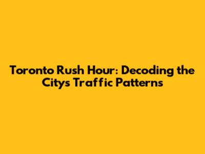The Anatomy of Toronto's Rush Hour: What You Need to Know