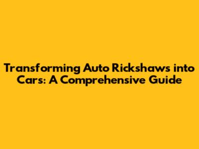 Transforming Auto Rickshaws Into Cars: A Comprehensive Guide