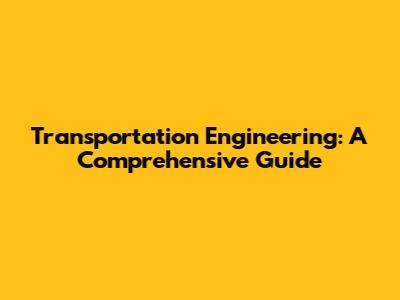 Transportation Engineering: A Comprehensive Guide