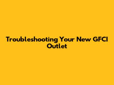 Troubleshooting Your New GFCI Outlet