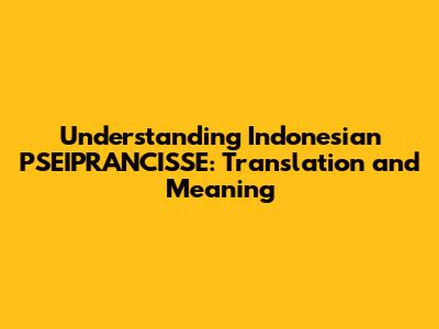 Hey guys! Ever stumbled upon the term PSEIPRANCISSE in the Indonesian context and wondered what it means? Well, you're not alone! It's a phrase that has been buzzing around, and understanding its nuances can be quite helpful, especially if you're navigating Indonesian social media, news, or even just chatting with some Indonesian friends. Let's dive deep into the meaning and translation of PSEIPRANCISSE in Indonesian, exploring its usage and significance.