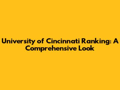 University Of Cincinnati Ranking: A Comprehensive Look