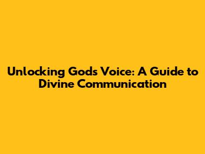 Unlocking God's Voice: A Guide To Divine Communication
