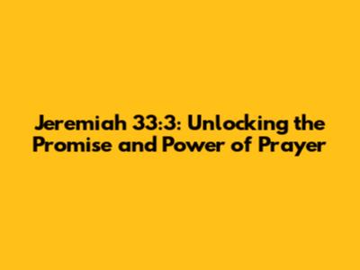 Why is Jeremiah 33:3 Important?