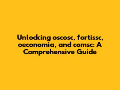 Unlocking Oscosc, Fortissc, Oeconomia, And Comsc: A Comprehensive Guide