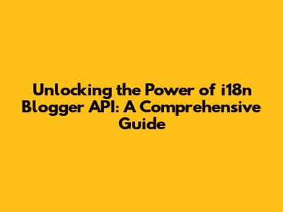 Unlocking The Power Of I18n Blogger API: A Comprehensive Guide