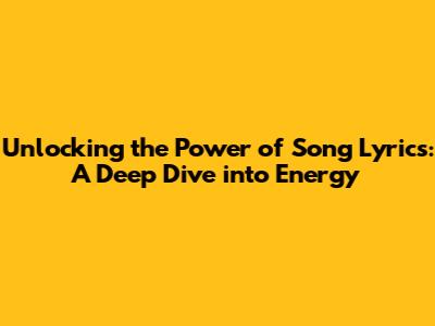 Unlocking The Power Of Song Lyrics: A Deep Dive Into Energy