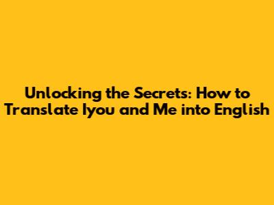 Unlocking The Secrets: How To Translate 'Iyou And Me' Into English