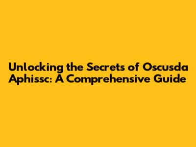 Unlocking The Secrets Of Oscusda Aphissc: A Comprehensive Guide