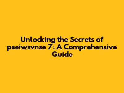 Unlocking The Secrets Of Pseiwsvnse 7: A Comprehensive Guide