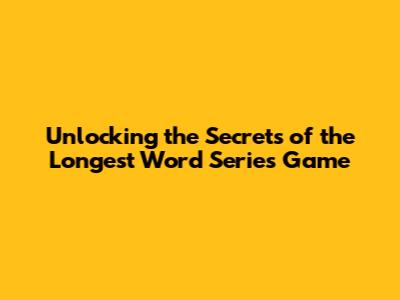 Unlocking The Secrets Of The Longest Word Series Game
