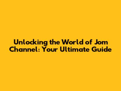 Unlocking The World Of Jom Channel: Your Ultimate Guide