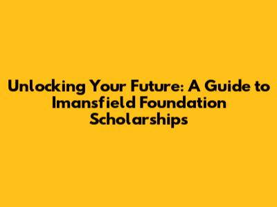 Unlocking Your Future: A Guide To Imansfield Foundation Scholarships
