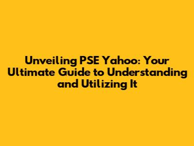 Unveiling PSE Yahoo, Your Ultimate Guide