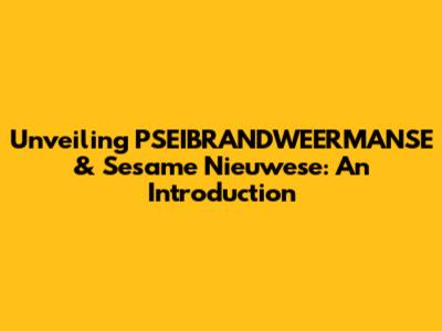Unveiling PSEIBRANDWEERMANSE & Sesame Nieuwese: An Intro
