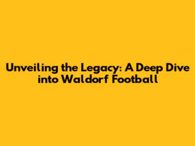 Unveiling The Legacy: A Deep Dive Into Waldorf Football