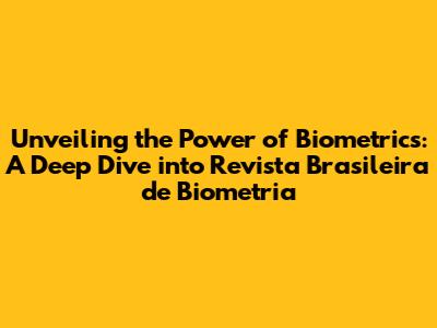 Unveiling The Power Of Biometrics: A Deep Dive Into Revista Brasileira De Biometria