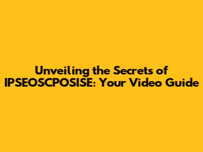 Unveiling The Secrets Of IPSEOSCPOSISE: Your Video Guide