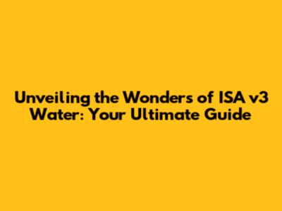 Unveiling The Wonders Of ISA V3 Water: Your Ultimate Guide