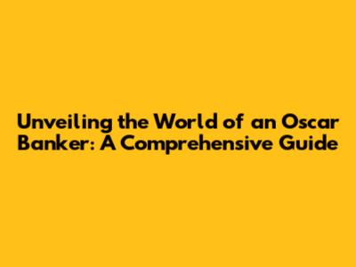 Unveiling The World Of An Oscar Banker: A Comprehensive Guide