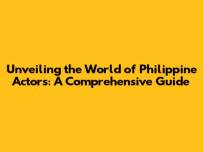 Unveiling The World Of Philippine Actors: A Comprehensive Guide